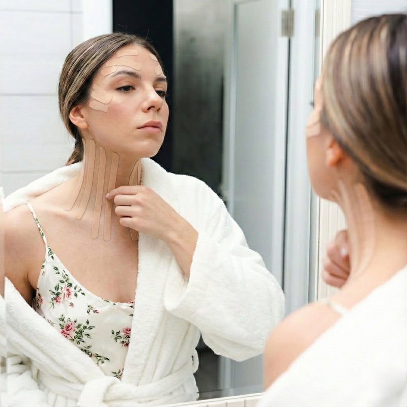 Το Tapelift ακολουθεί αυτή τη φιλοσοφία: ελαστική ταινία σε ρολό με υφασμάτινη βάση, ιδανική για μέτωπο, «11», μάτια, παρειές, jawline και λαιμό.