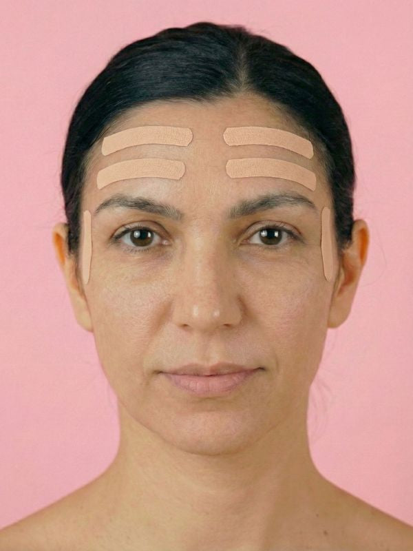 Τοποθέτησε προσεκτικά την ταινία στα σημεία που θέλεις να στοχεύσεις. Σήκωσε ελαφρά το δέρμα με τα δάχτυλα και κολλήσε, χωρίς να τεντώσεις, την ταινία. Πίεσε απαλά ώστε να εφαρμόσει σωστά και να έρθει σε καλή επαφή με το δέρμα.