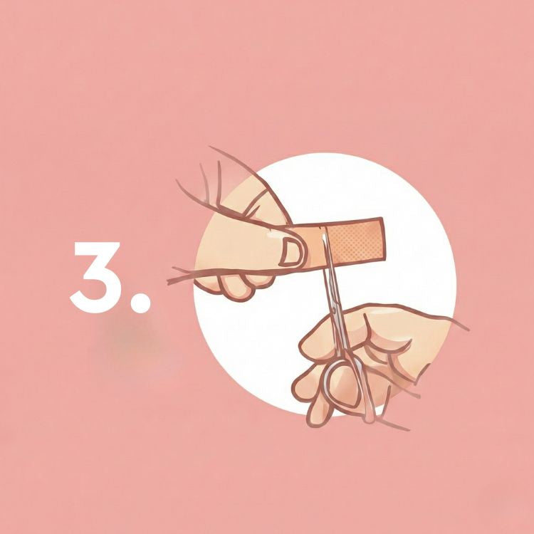 💡 Tip: Κόψε τη λωρίδα λεπτή και καμπύλη, στρογγύλεψε άκρες και κόλλησέ τη χωρίς τέντωμα. Μην ακουμπά ρουθούνι ή χείλη.